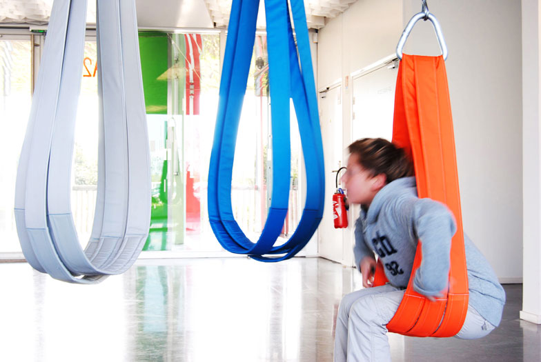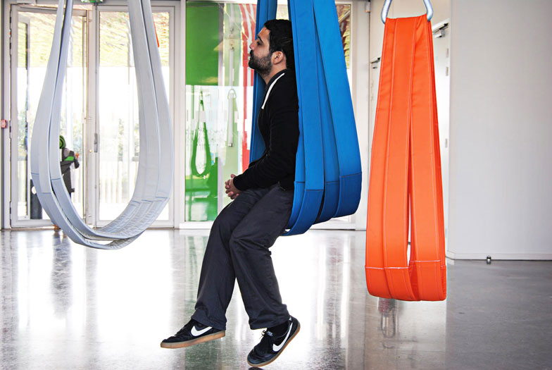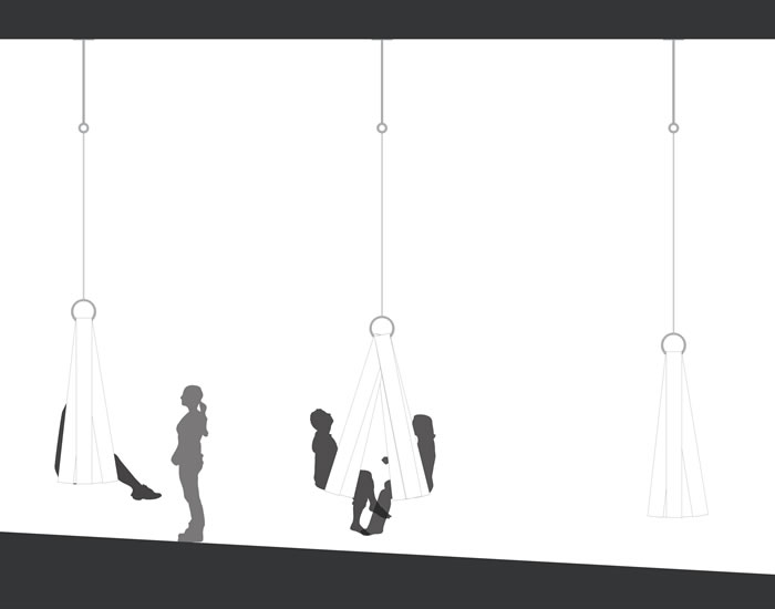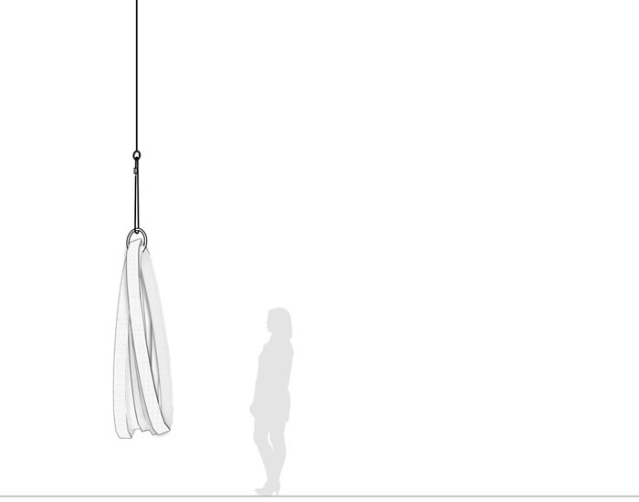 LOOP is a seat that reinvents the notion of urban furniture with a light and surprising presence. It is a long strip of textile that passes through a support ring creating five loops that act as seating. It helps to strengthen social and physical connections in public areas. This urban seating structure adapts to the existing infrastructure of the city. The introduction of a textile object in the urban space is rather special. It is this unusual aspect which gives the space a flexible character, usually associated with interior spaces. Currently textiles are rarely used in public spaces: the materials generally employed are hard and cold, typically associated with the durability and resistance required. Thanks to the possibilities which new textile technologies offer, options which have never been used before can now be explored . The project LOOP stems from this idea: offering a genuine seating experience with an appearance that attracts the attention of passers-by.